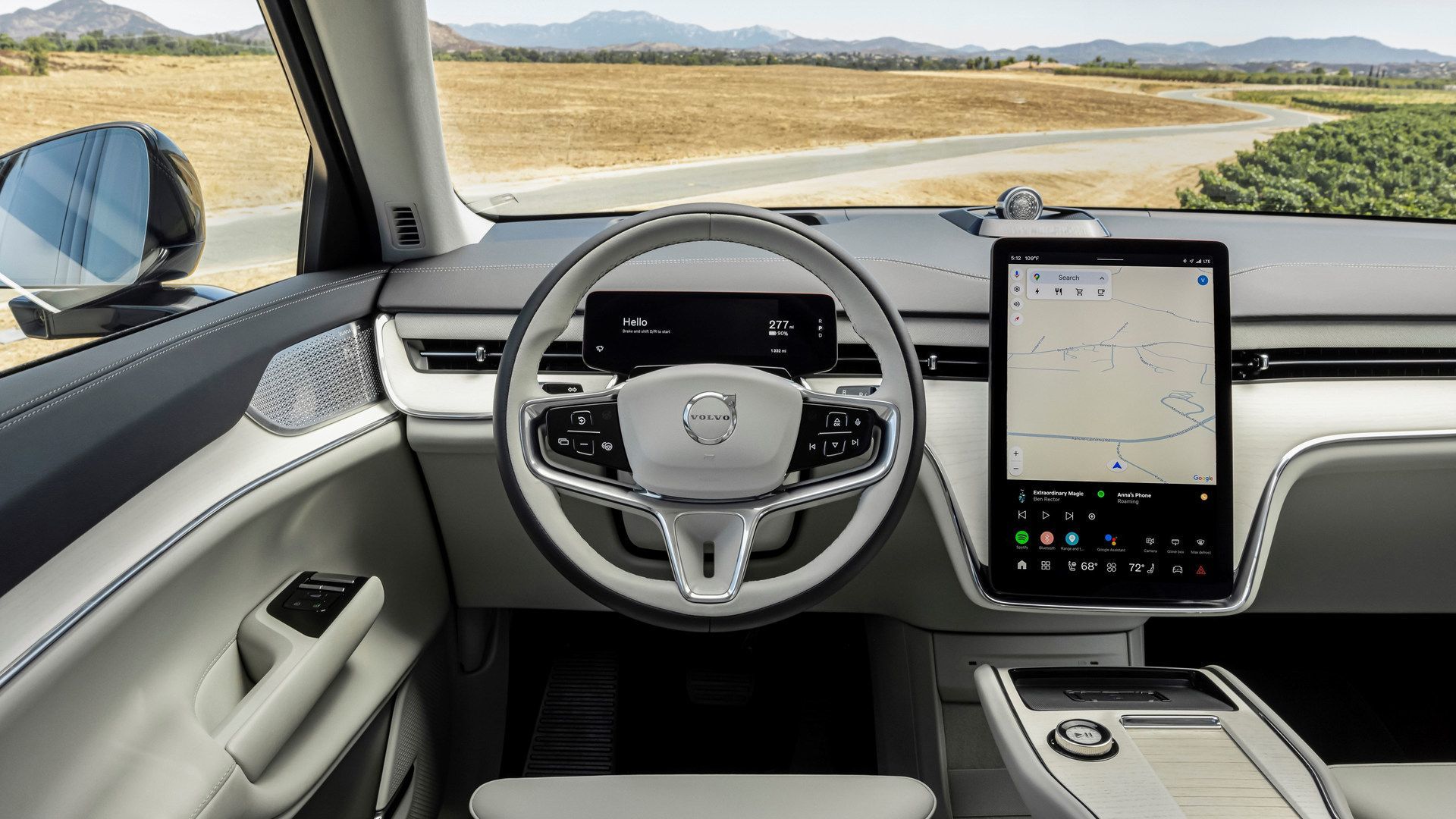 Les deux VUS présentent la plus récente expérience utilisateur de Volvo avec Google intégré, incluant Google Maps, Google Assistant et l'accès aux applications via Google Play. L'EX90 introduit un intérieur minimaliste avec le levier de vitesses monté sur la colonne de direction, libérant l'espace de la console centrale pour le rangement et la recharge sans fil. Les matériaux haut de gamme incluent un revêtement en mélange de laine sur mesure et des incrustations de bois certifié FSC, sans option en cuir, reflétant l'engagement de Volvo envers le luxe durable.